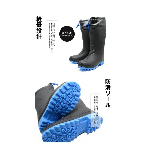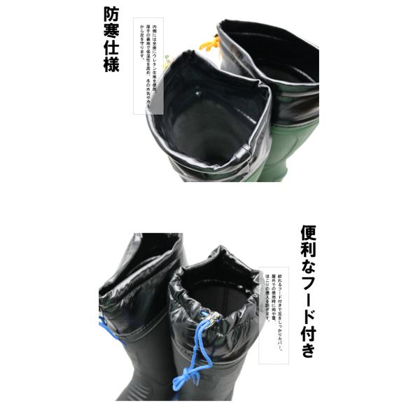 ミツウマ メンズ 紳士 長靴 レインブーツ 防寒 防滑 軽量 保温 防水 フード付き ロング ブラック カーキ ネイビー 緑 黒 紺 雪 雨 冬 MRB-2040MU