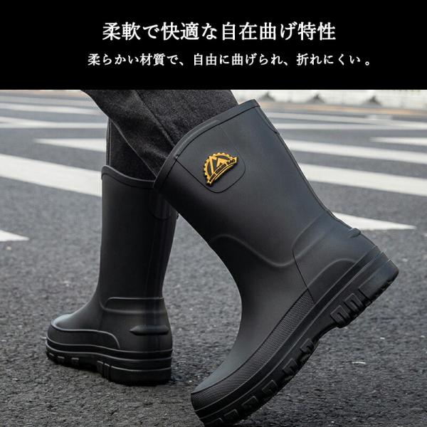 ミドル丈 長靴 レインブーツ メンズ 雪 おしゃれ 軽量 雨 完全防水 釣り 作業 幅広 農作業 ガーデニング 防水 滑らない 蒸れにくい おしゃれ レインシューズ