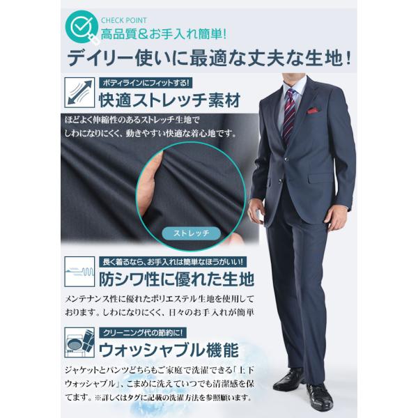 メンズスーツ 上下洗える 安い 上下 春夏 ややスリム ストレッチ オールシーズン シングルスーツ 仕事 ビジネス セットアップ 秋冬 防シワ スーツハンガー付属