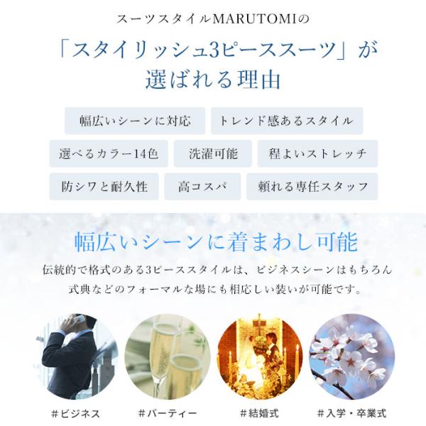 3ピーススーツ メンズ スリーピース 春夏 スーツ 洗える レギュラー シングル 三つ揃い 2つボタン ビジネス セレモニー おしゃれ 秋冬 【スーツハンガー付属】