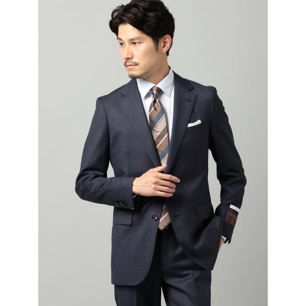 【スーツスクエア】メンズ スーツ 2つボタン CANONICO PRUNELLE グレンチェック CH24 ネイビー 上下セット 背広 紳士服 タイト スリム ビジネス オフィス