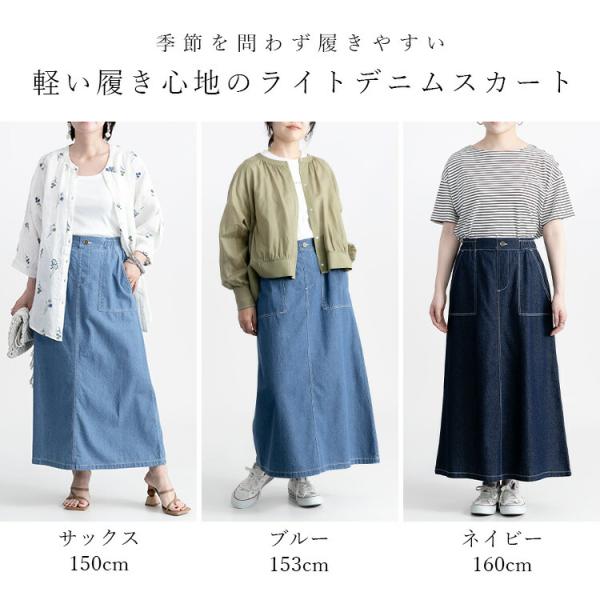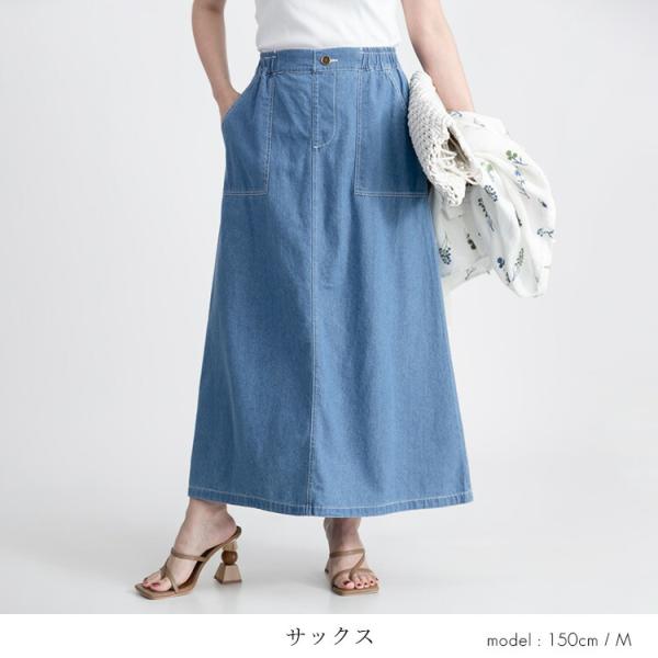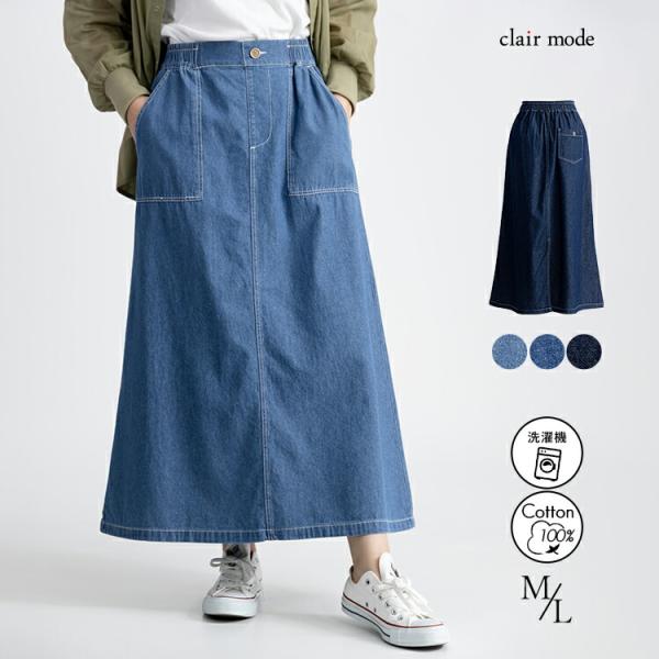 【送料無料】 デニムロングスカート 3色 M L 洗える 綿100% レディース ボトムス スカート ロングスカート デニムスカート 軽量 オールシーズン 春夏秋冬 4334