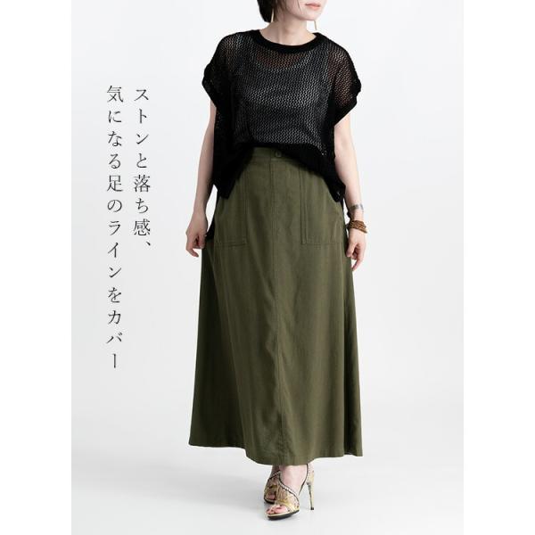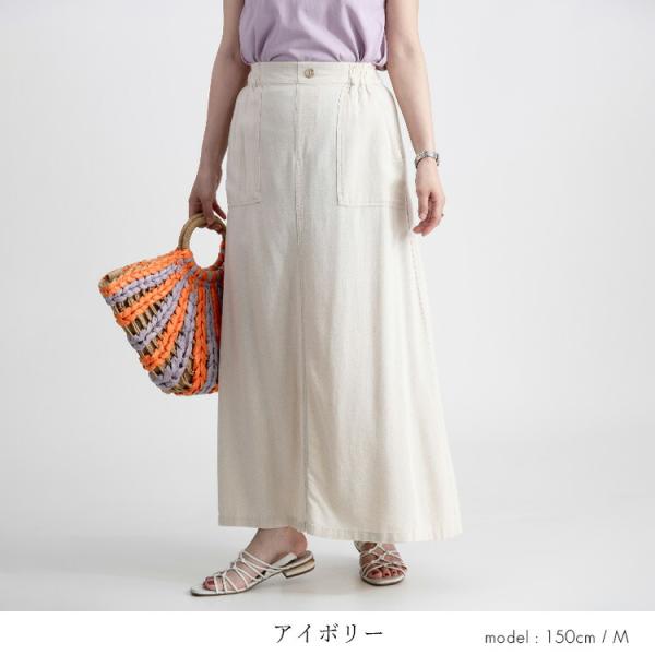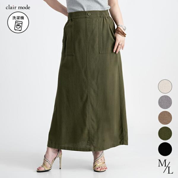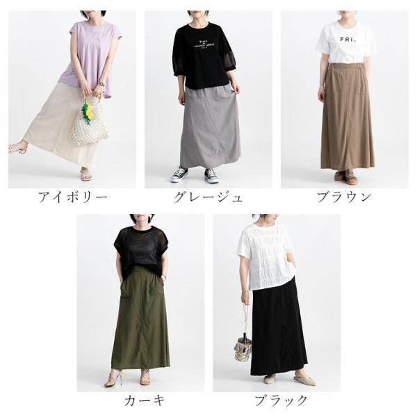 【送料無料】 ドライタッチスカート 洗える 綿麻混 レディース ボトムス スカート ロングスカート ウエストゴム 体型カバー 楽ちん 春夏秋 6334