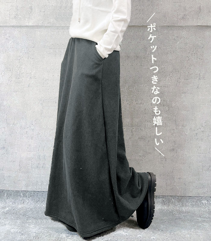 1393円 3点購入クーポンで! スカート フレアスカートロング レディース 裏起毛 秋 冬 黒 おしゃれ かわいい 30代 40代 50代 コーデュロイ リブ ^b426^