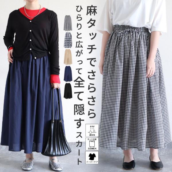 フレア スカート ギャザースカート レディース 春 夏 黒 白 ロング マキシ丈 ウエストゴム おしゃれ かわいい チェック 柄 [郵3]^b522^