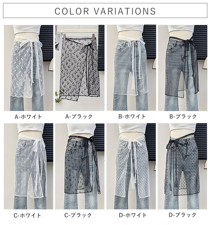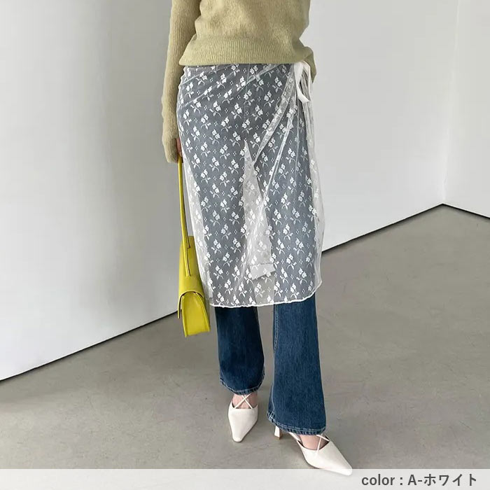 ラップスカート ボトムス レディース 春 夏 秋 冬 白 黒 おしゃれ かわいい シースルー レース 刺繍 付け裾 重ね着 [定形外]^msz169^