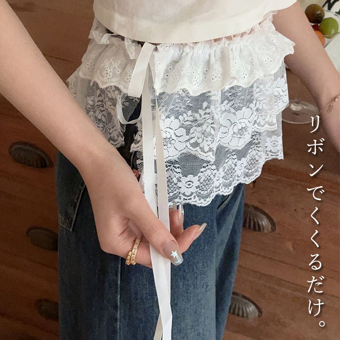 付け裾 レイヤード レース レディース ラップスカート 巻きスカート 春 夏 秋 冬 白 黒 おしゃれ かわいい シアー フリル ボトムス [定形外1]^msz172^