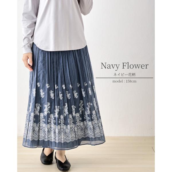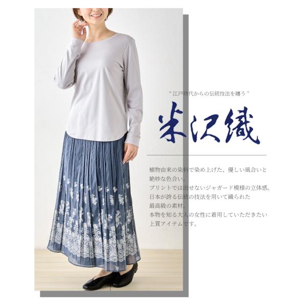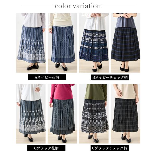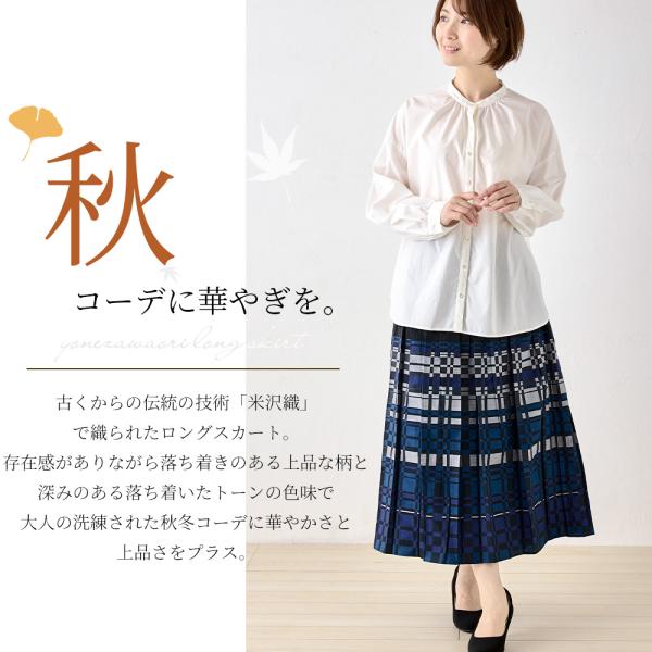 米沢織 ロングスカート リバーシブル プリーツ フレア きれいめ 柄 ロング 上品 花柄 チェック 体型カバー 秋 冬 黒 紺 ブラック ネイビー 40代 50代 60代