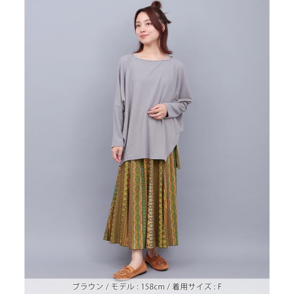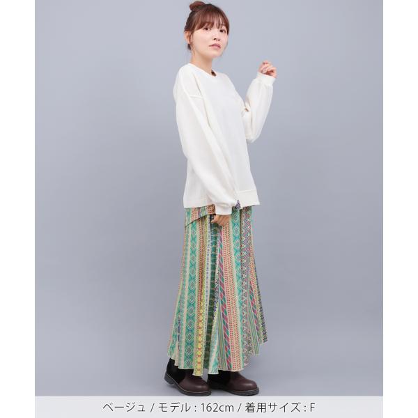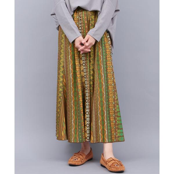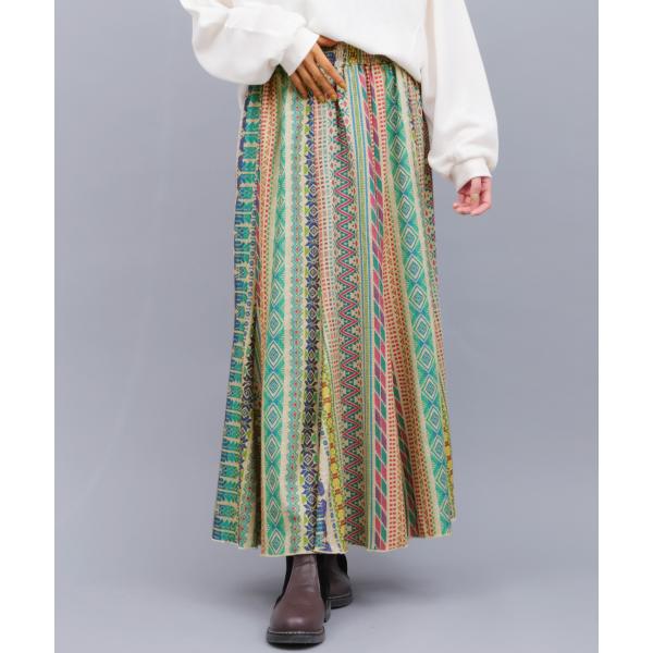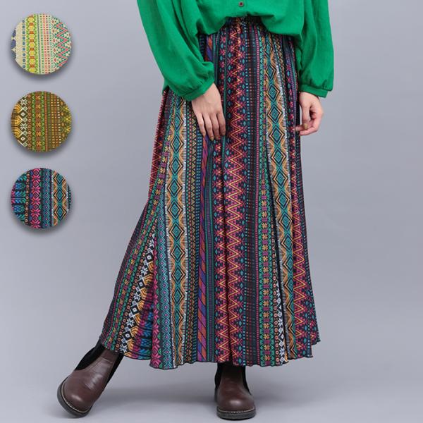 ファブリックプリントジャージースカート / ロングスカート Mサイズ Lサイズ 2サイズ 秋 冬 春 夏 フレア ウエストゴム 総柄 幾何学柄 レディース