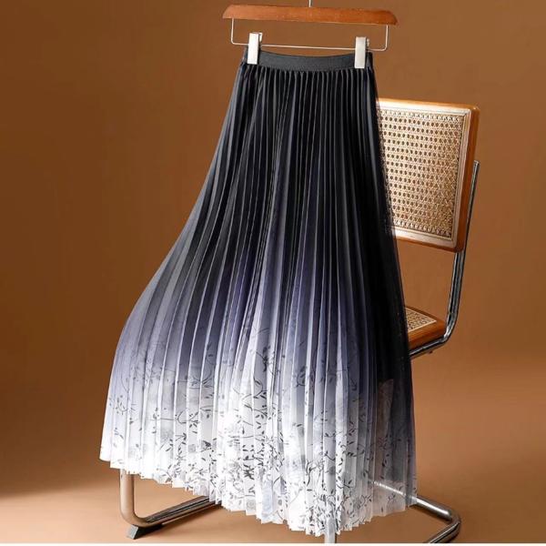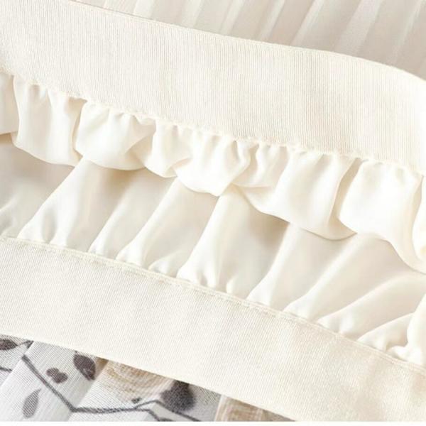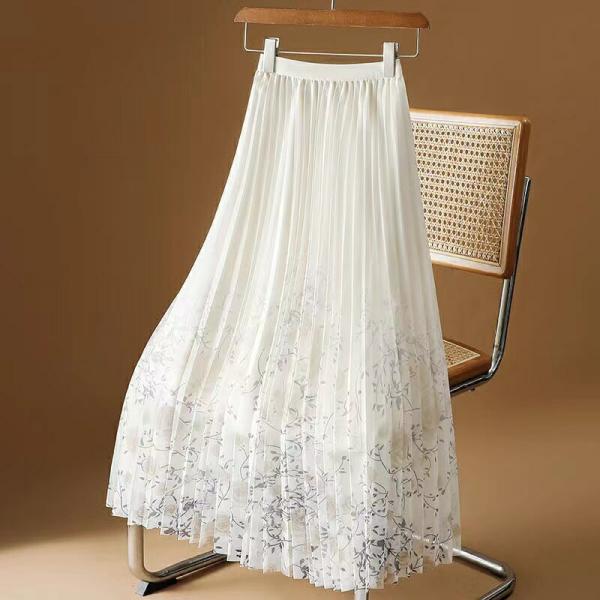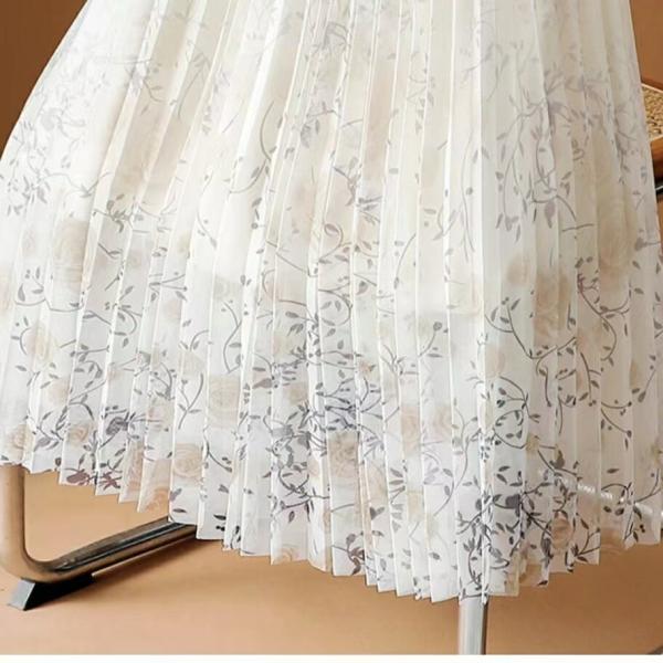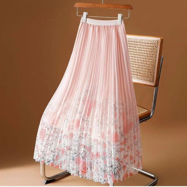 プリーツスカート レディーススカート ロングスカート チュール2枚重 ロング丈 チュチュスカート 花柄 裏地付き ウエストゴム 総丈80cm SLKC024 (S-XL)