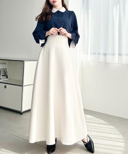 スカート 「累計販売枚数2万枚突破!」カットジョーゼットハイウエストボリュームフレアスカート