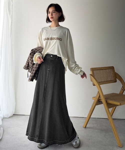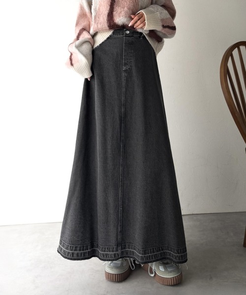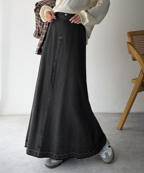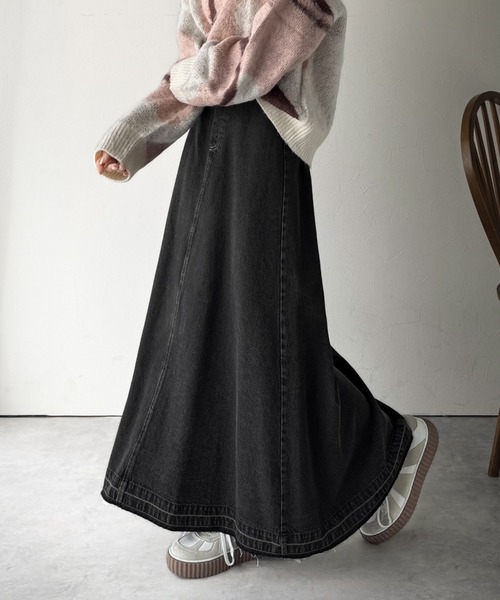 デニムスカート 綿100% 主役級の美フレアスカートでコーデの格上げ デニムフレアスカート(ロング)