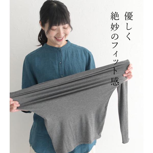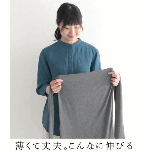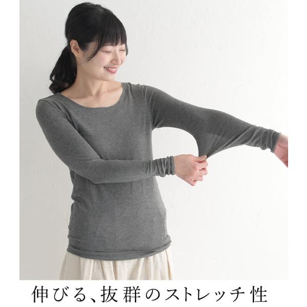 2点までメール便可 インナーカットソー 無地 長袖 レディース もっちり ストレッチ 伸びる クルーネック 26SS0116R,