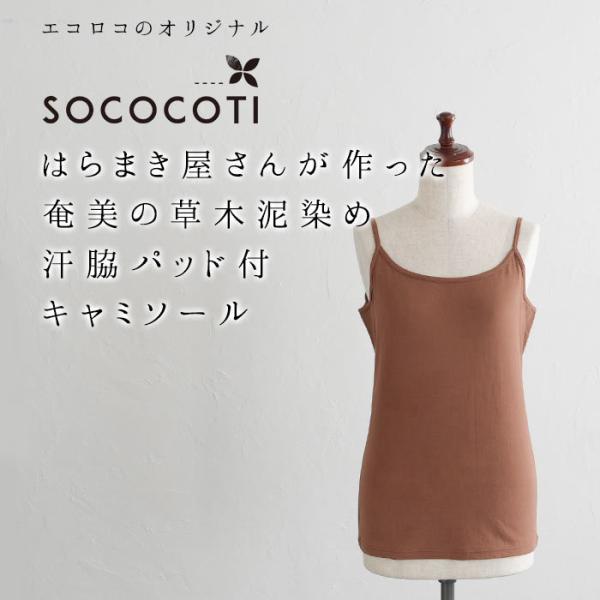 日本製 キャミソール 奄美の泥染め 草木染 コットン 汗脇パッド インナー 綿 2120SS0521, エコロコ