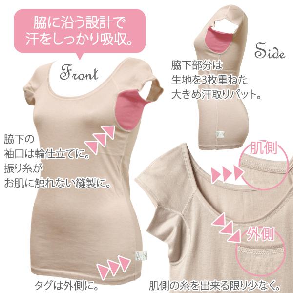 サマー 汗取りパット付き フレンチインナー お肌にやさしい下着 Fleep フリープ 汗取り インナー 半袖 フレンチ袖 シンプル ネコポス可 84065 S M L LL