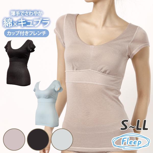 サマー カップ付きフレンチ ブラトップ シンプル お肌にやさしい下着 Fleep フリープ ナイトブラ ノンワイヤー 日本製 ネコポス可 84109 S M L LL