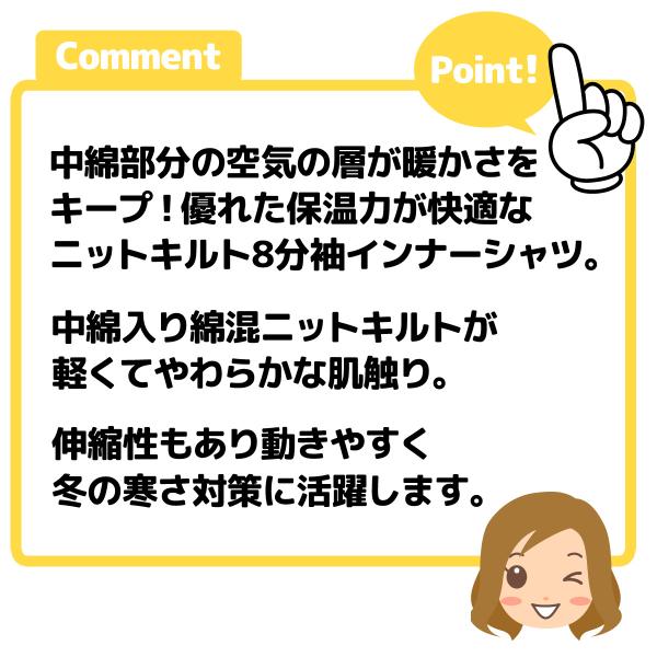 送料無料 婦人 レディース ニットキルト 8分袖 インナー シャツ あったか 優れた保温力 軽い 伸縮性 肌着 下着 yg-1665 メール便対応