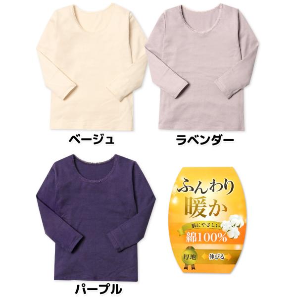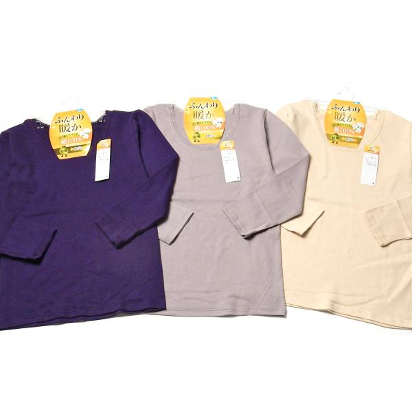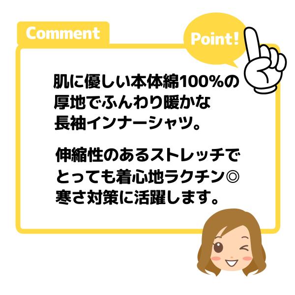 送料無料 婦人 レディース 本体綿100% 長袖 インナー シャツ 肌着 下着 厚地 あったか 肌にやさしい 伸縮性 yg-1818 メール便対応