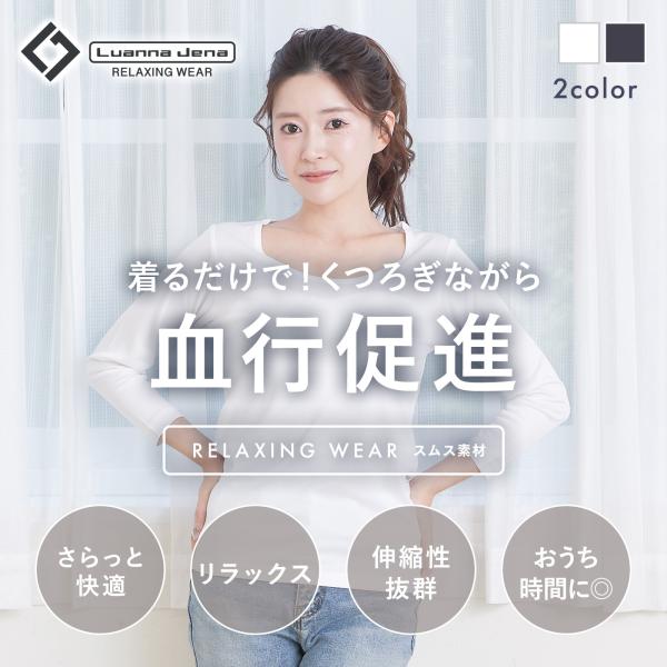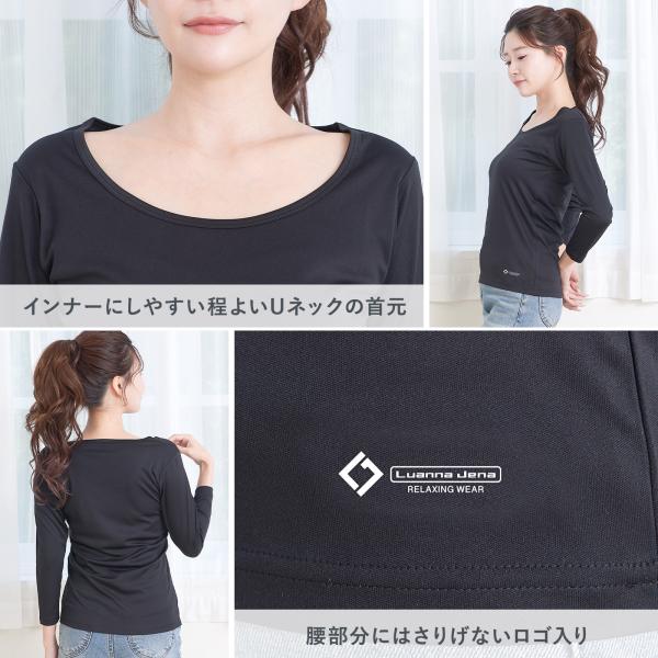 リラクシングウェア リカバリーウェア レディース 吸汗速乾 長袖 丸首 Tシャツ ストレッチ ロンT インナー 無地 インナーシャツ 8分袖 プレゼント Luanna Jena