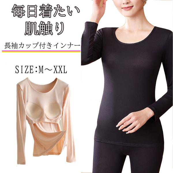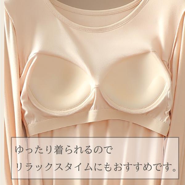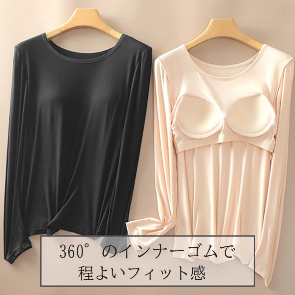 着ぶくれしない カップ付きインナー パットが外れない 長袖 薄手 パット付き 単品 レディース 肌着 ルームウェア カップ付 下着 ブラトップ