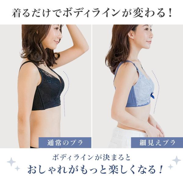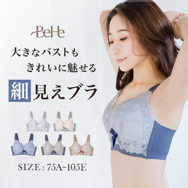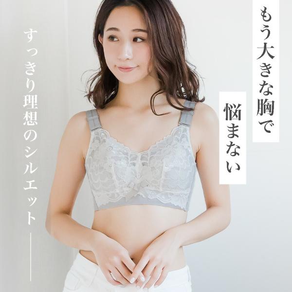 胸を小さく見せる ブラジャー 大きいサイズ 脇高 ブラ ノンワイヤー 補正下着 薄型パッド レース 脇肉 補正ブラ グラマー