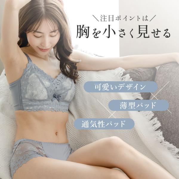 大きな 胸を小さく見せるブラ ショーツセット フルカップ ブラジャー ノンワイヤー 大きいサイズ 着やせブラ 脇高ブラ 脇肉 補正ブラ 20代 30代 40代 50代