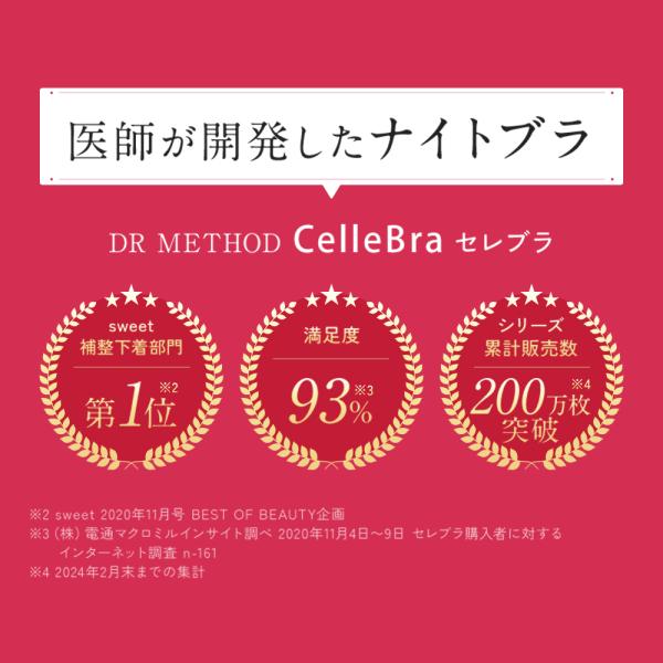 ナイトブラ ブラジャー 補整ブラ CelleBra セレブラ DR METHOD ドクターメソッド 医学発想 女医開発 花柄 バスト補整 流れ胸 離れ胸 垂れ胸 パワーメッシュ