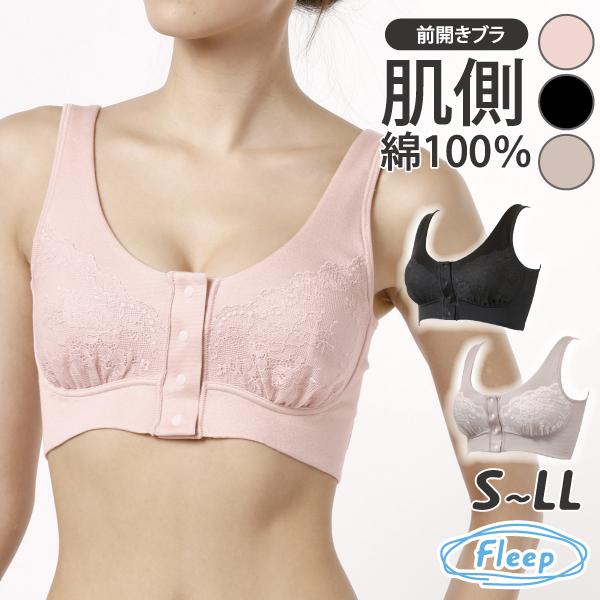ブラジャー 前開き レーシー ハーフトップ ナイトブラ ノンワイヤー フロントホック Fleep フリープ 日本製 乳がん 術後 ネコポス可 84087 S M L LL bra 四十肩