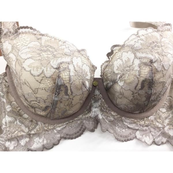 ブラジャー 脇高 花柄レース やわらかカップ A75 アイボリーブラウン 送料250円