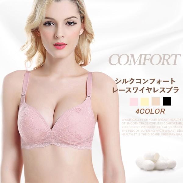 レースワイヤレス ブラ 3/4カップ メール便送料無料 シルク コンフォート ノンワイヤ ナイトブラ シルクブラ シルク ブラジャー マリーネ シルク100%