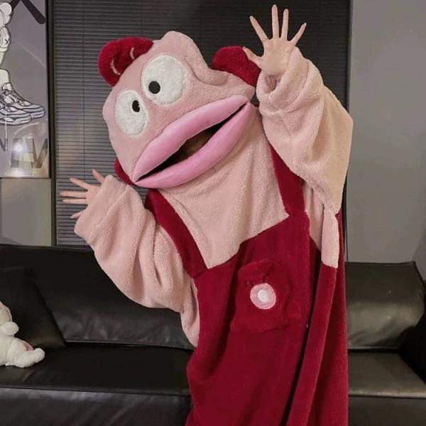着ぐるみパジャマ ふわふわ もこもこ オーバーオール ハンギョドン 赤 黒 ピンク 大人 カップル ルームウェア かわいい 着る毛布 あったかい あたたかい 冬