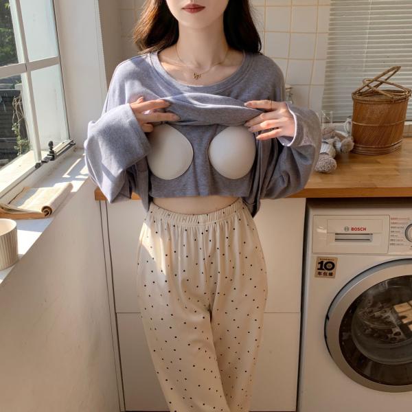 ルームウェア パッド付き カップ付き レディース セットアップ 上下セット 春 夏 秋 冬 春用 夏用 秋用 冬用 春夏 秋冬 長袖 長ズボン ロングTシャツ