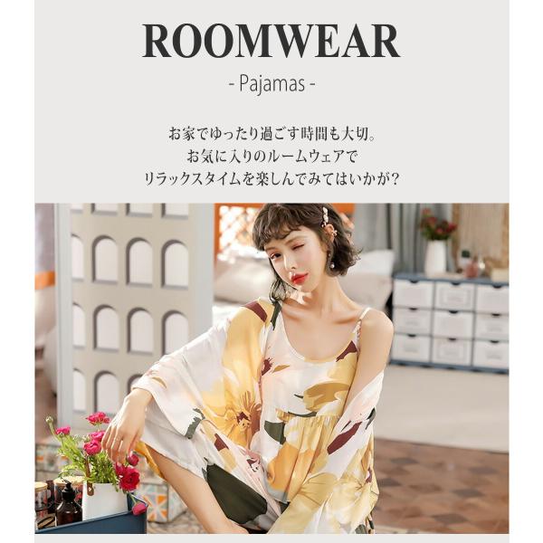 ルームウェア レディース 上下セット 可愛い 7分袖 ガウン キャミソール ハーフパンツ リボン 黒 白 部屋着
