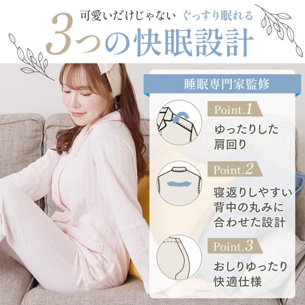 睡眠専門家監修 パジャマ レディース ルームウェア 春 秋 長袖 上下セット 快眠設計 長ズボン 肌側 綿100% 前開き プレゼント Luanna Jena QWHI01