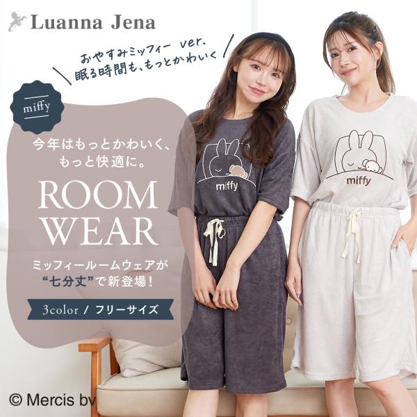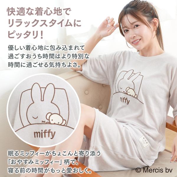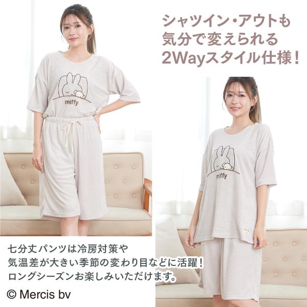 ミッフィー ルームウェア レディース パジャマ 半袖 七分丈パンツ 春 夏 上下セット かわいい アップリケ付き やわらか素材 部屋着