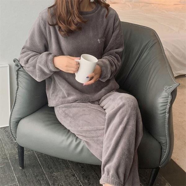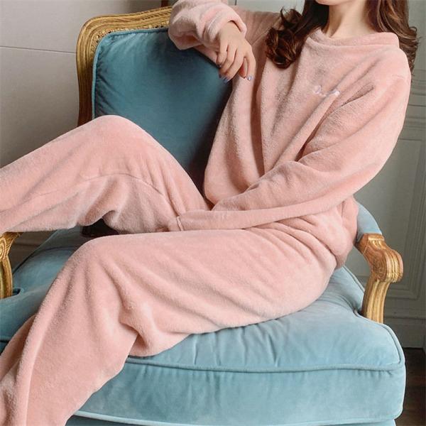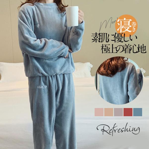 ルームウエア レディース パジャマ 【2点購入で100円OFF】 部屋着 ナイトウエア 2点セット 長袖 秋冬 フリースパジャマ 裏起毛 上下セット 厚手 ふんわり 入院