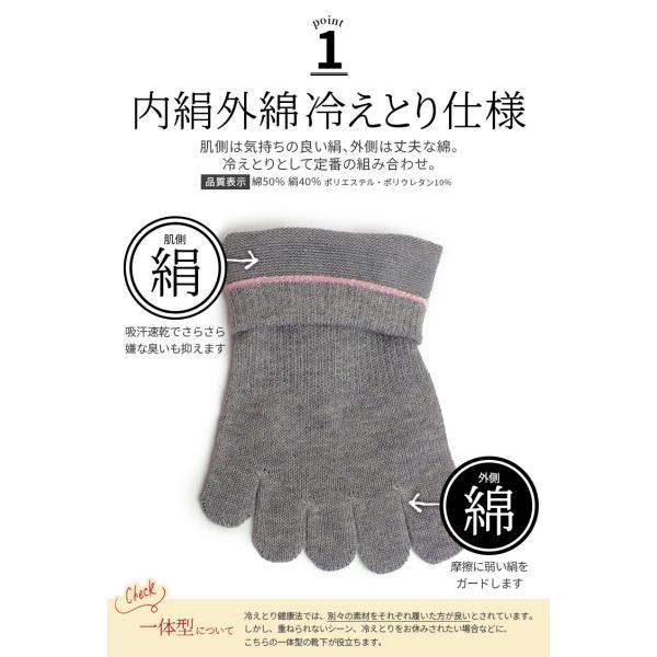 5本指スニーカーソックス 内絹外綿 レディース メンズ くるぶし 夏用 夏 春 冷えとり 五本指ソックス 5本指 シルク 綿 消臭 蒸れ防止 脱げない 日本製 841