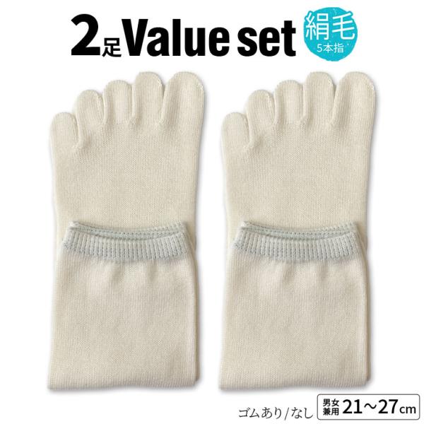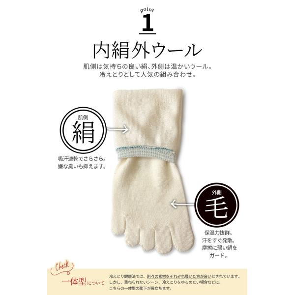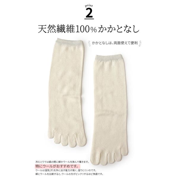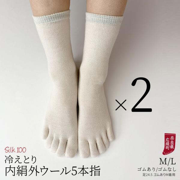 冷えとり靴下 2足セット 内絹外ウール 5本指ソックス 冷え取り靴下 靴下 レディース メンズ シルク ウール 天然繊維100% かかとなし ゴム選択可 日本製 841