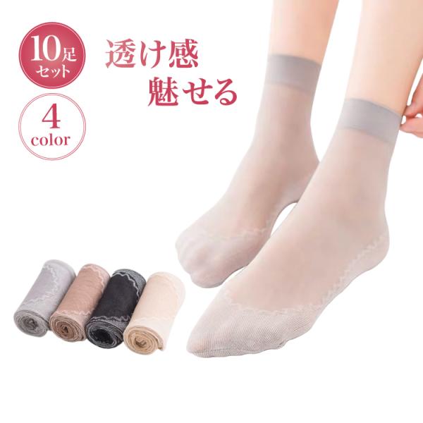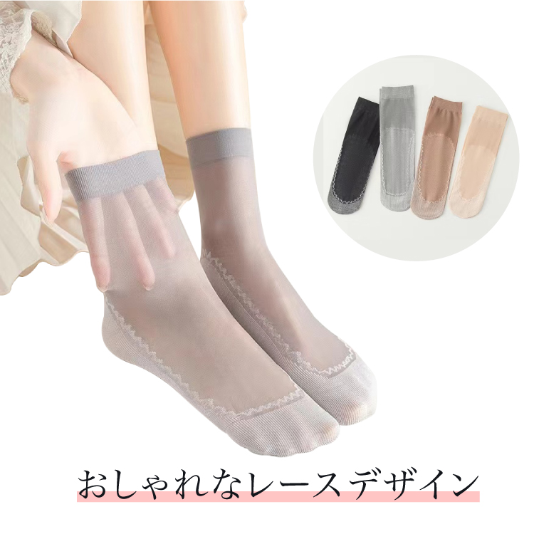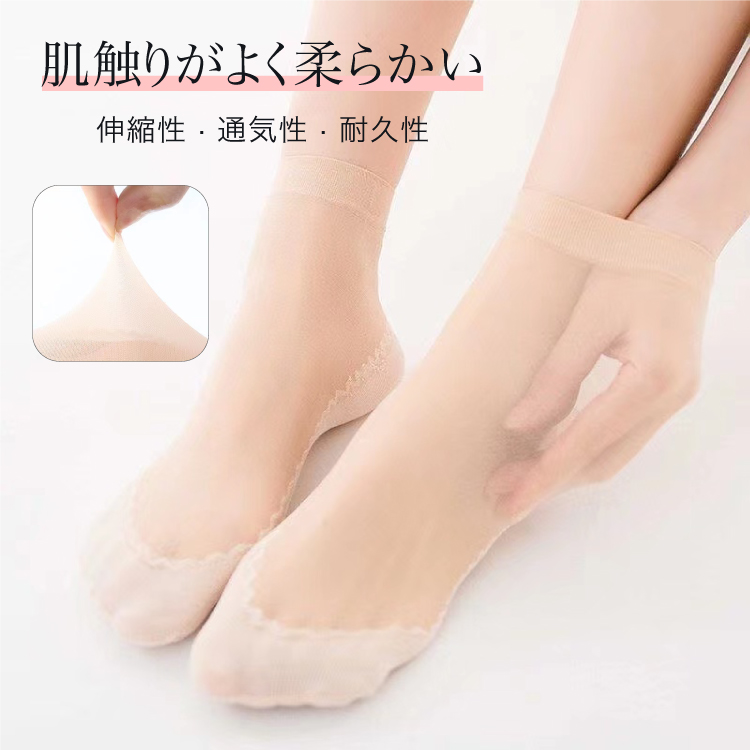 10足組 靴下 レディース シースルー おしゃれ 夏用 薄手 くつ下 ストッキングソックス 脱げない 肌色 シースルー 黒 ベージュ グレー 爆買
