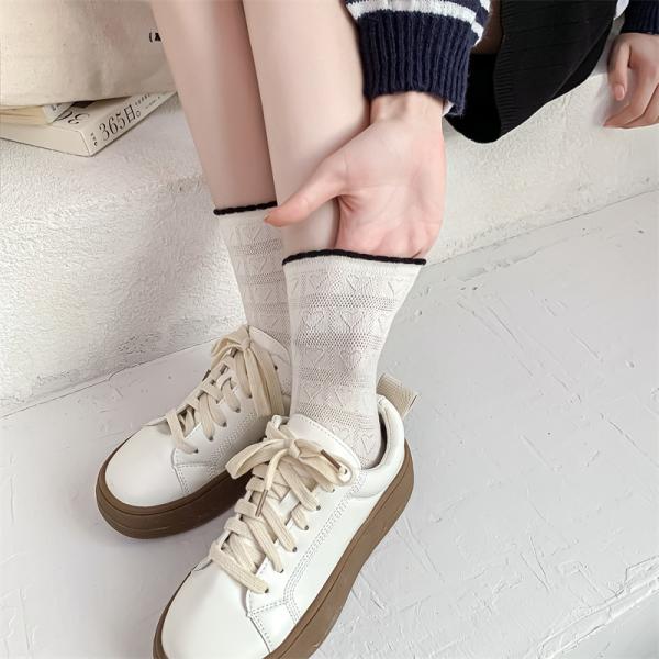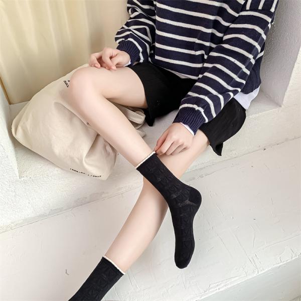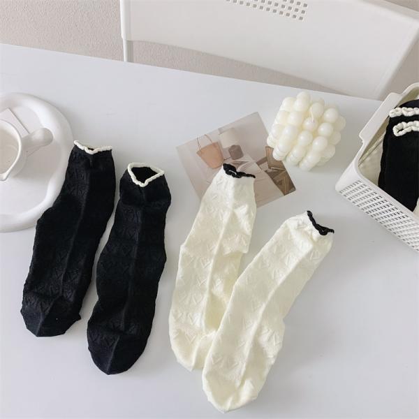 レディースソックス 通気性 爽やか 薄手 綿 春 夏 涼しい メッシュ おしゃれ 女性 くつした カジュアル 婦人 かわいい(2足入り, ブラック)