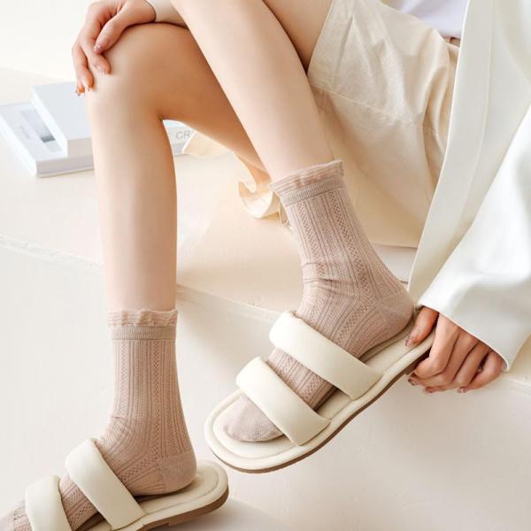 レディースソックス レース 通気性 夏用 おしゃれ かわいい 綿 メッシュソックス 薄手レース カラフルソックス カジュアルソックス 蒸れない靴下