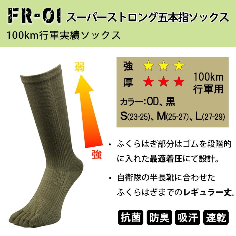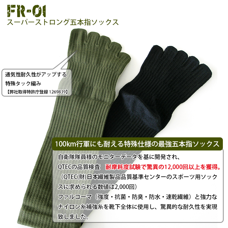 ガッツマン 靴下 FR-01 スーパーストロングソックス 100km行軍用 五本指ソックス 自衛隊靴下 自衛隊御用達 レンジャーソックス 丈夫 長持ち 疲労軽減