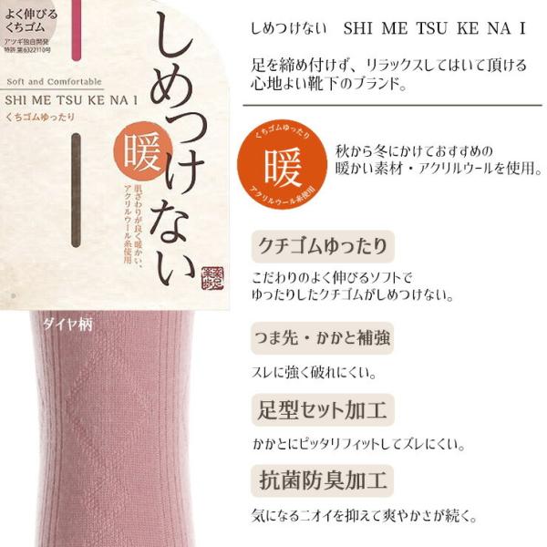 ソックス レディース ATSUGI しめつけない 暖 あったか毛混 ダイヤ柄 LB84031 3足組 アツギ atsugi 靴下 レディース 締め付けない靴下 介護 はき口ゆったり…