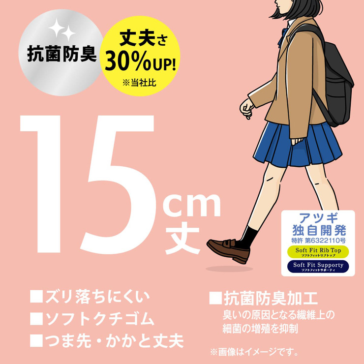 スクールソックス 靴下 ソックス 学校 白 黒 紺 アツギ new スクールタイム 15cm丈 リブ編み LS70083 3足組 ショートクルー丈(06139)