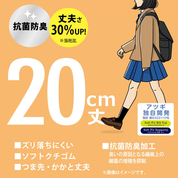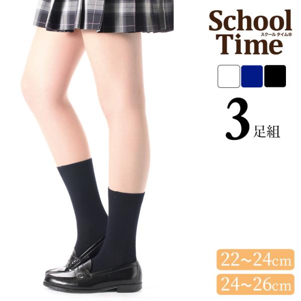 スクールソックス 靴下 ソックス 学校 白 黒 紺 アツギ new スクールタイム 20cm丈 リブ編み LJ70083 3足組 ジャストクルー丈(06140)