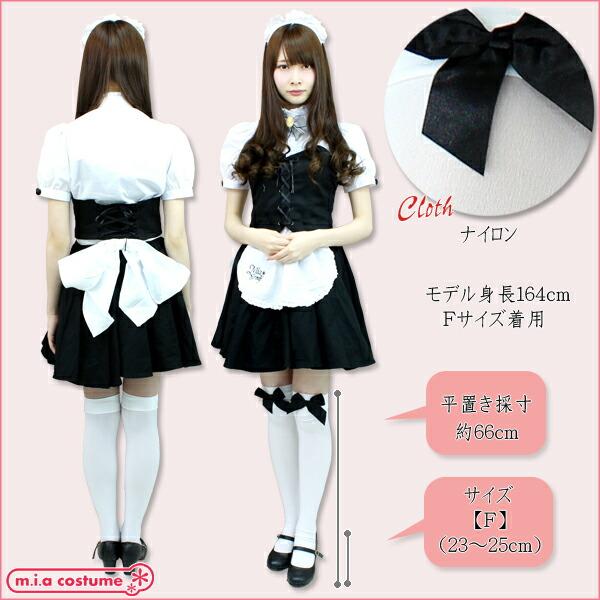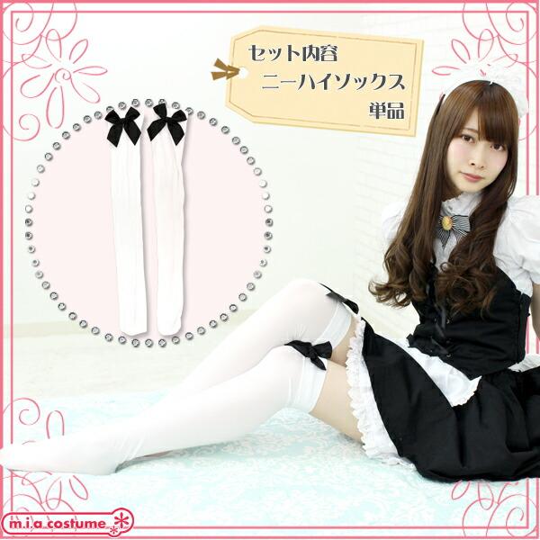 1202B▲【送料無料・即納】 リボン付きニーハイ 色:白×黒リボン サイズ:フリー ソックス コスチューム コスプレ