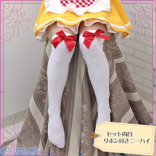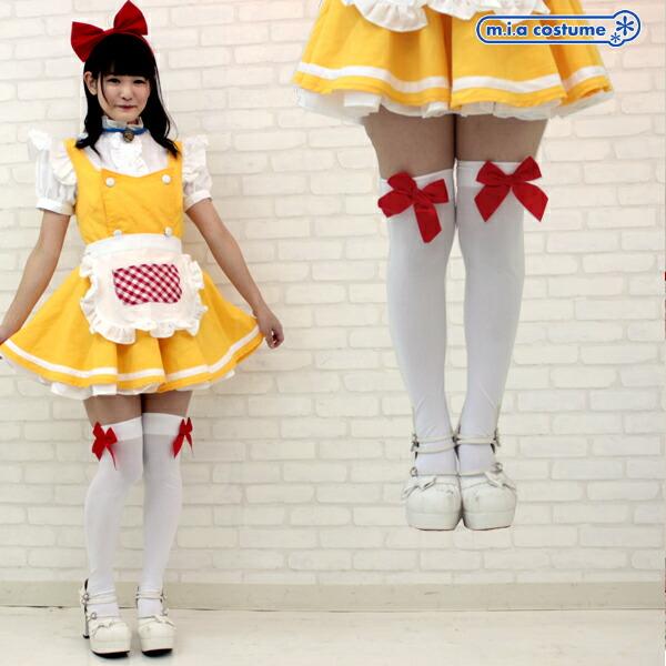 1202A▲【送料無料・即納】リボン付き ニーハイ 色:白×赤リボン サイズ:フリー ニーソオーバーニー コスチューム コスプレ