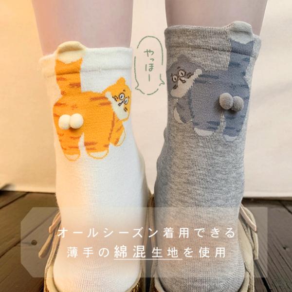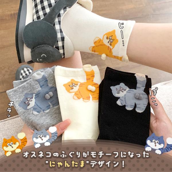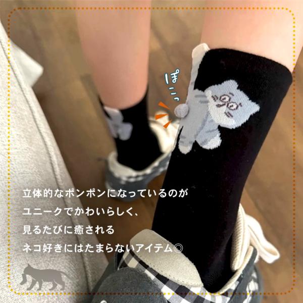 靴下 クルーソックス レディース 黒 白 まとめ買い セット 猫 にゃんたま おしゃれ 春 夏 薄手 綿混 ニャンタマ ねこ ネコ 可愛い