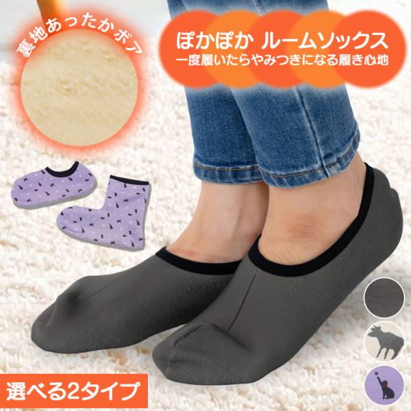 ルームソックス 滑り止め カバー もこもこ 暖かい レディース カバーソックス 靴下 ソックス 厚手 裏ボア 秋 冬 防寒 洗える ルームシューズ