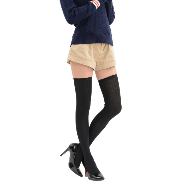 太リブ編み ニーハイソックス オーバーニー 60cm丈 ロング丈 膝上靴下 美脚